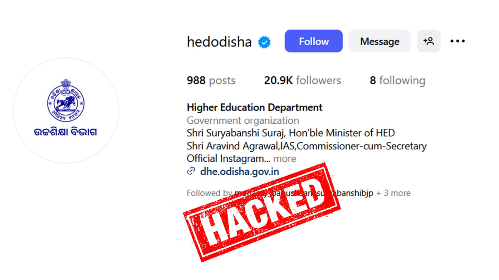 ଉଚ୍ଚଶିକ୍ଷା ବିଭାଗର ଇନଷ୍ଟାଗ୍ରାମ ଆକାଉଣ୍ଟ ହ୍ୟାକ୍