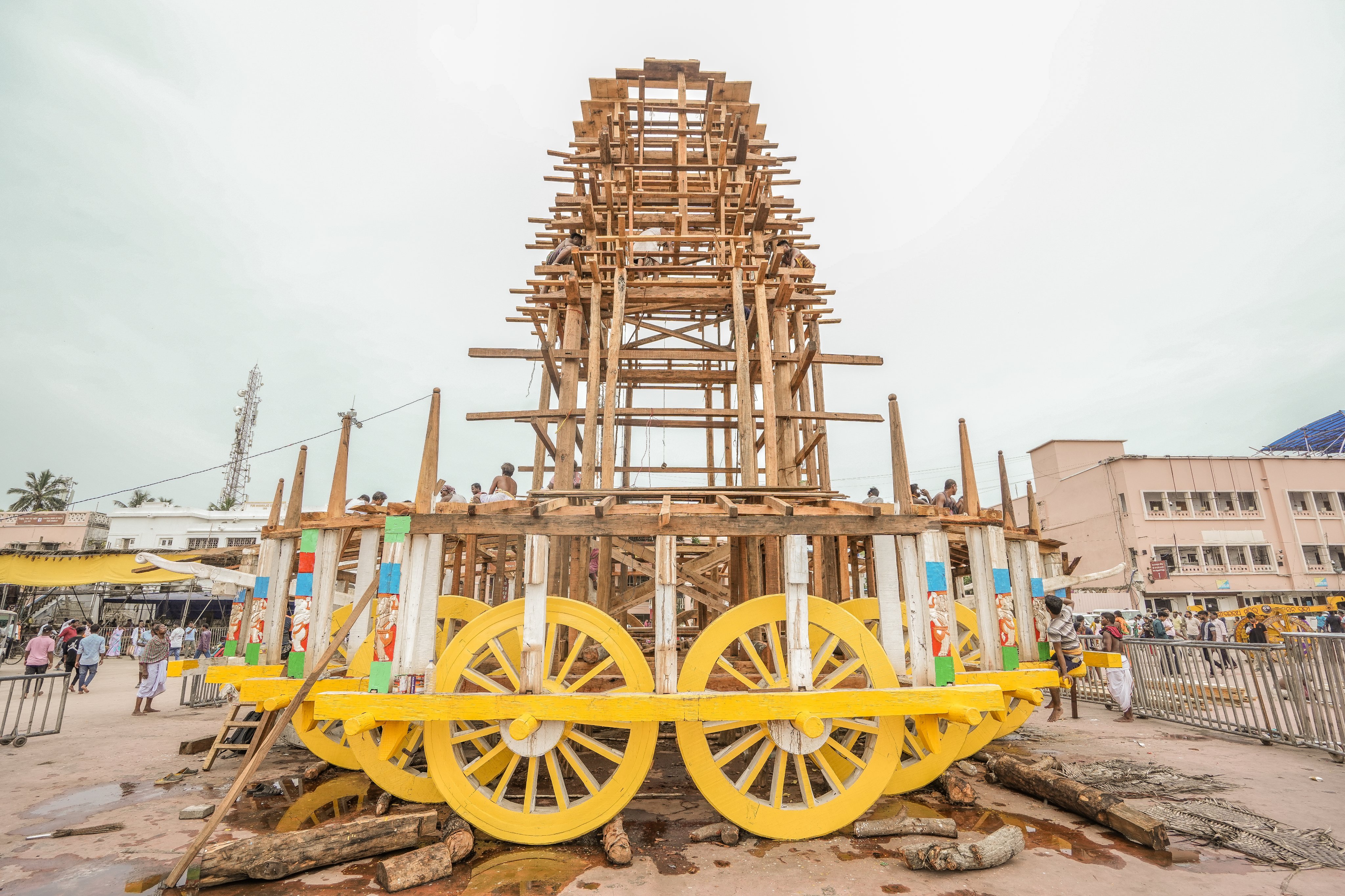 ଏଥିସହ ରଥର ଚାରି କୋଣଗୁଡ଼ିକୁ ଛାଡ଼ି ତିନିରଥ ଉପର ତାଗ ବାଡ଼ିଆ ଶେଷ ହୋଇଛି। ପୋଟଳ ସମେତ ପାରା ଭାଡ଼ି ଓ ଖପୁରିର ନିର୍ମାଣ କାର୍ଯ୍ୟ ଶେଷ ହୋଇଛି। ୪ଟି ଲେଖାଏଁ ଚନ୍ଦ୍ରଶାଳୀ ନିର୍ମାଣ ଶେଷ ହୋଇଛି। କଳସରେ ସିଲଭର ଚଦର ଫିଟିଂ କାର୍ଯ୍ୟ ଶେଷ ହୋଇଛି। ୧୬ ଗୋଟି ନାଟ ଗୋଡ଼ରେ ରାହୁରୂପ ଖୋଦେଇ କାର୍ଯ୍ୟ ଶେଷ ପର୍ଯ୍ୟାୟରେ ପହଞ୍ଚିଛି। ଏଥିସହ ରୂପକାର ସେବକମାନେ ତିନି ରଥର ପଟା ଗୁଜଗୁଡ଼ିକରେ ନର ବିରାଳ, ଗଜ ବିରାଳ ରୂପ ଖୋଦେଇ ଆରମ୍ଭ କରିଛନ୍ତି। ମୁଖ୍ୟ ଚିତ୍ରକାର ସେବକ ଦେବରାଜ ମହାପାତ୍ରଙ୍କ ତତ୍ତ୍ୱାବଧାନରେ ୩୪ ଜଣ ଚିତ୍ରକର ସେବକ ରଥ ପାର୍ଶ୍ୱ ଦେବଦେବୀଙ୍କ ମୂର୍ତ୍ତିରେ ରଙ୍ଗ କାର୍ଯ୍ୟ ଚାଲୁ ରଖିଛନ୍ତି। ଦରଜୀ ସେବକ କନା କଟିଂ ପରେ ବତା କନାରେ ବିଳାସ ପଟି ସହ ଝାଲର ପକା କାର୍ଯ୍ୟ ଜାରି ରଖିଛନ୍ତି। କମାରଶାଳରେ ଓଝା ସେବକ ପୋଟଳ ପାଇଁ ଗୋଡ଼ି ଛାଲ କଣ୍ଟା ନିର୍ମାଣ ଶେଷ କରିଛନ୍ତି। ପୋଟକ ପାଇଁ ଜଂଘା କଣ୍ଟା, ଶୁଆ ଫିଟିଂ ପାଇଁ ନାରଜ କଣ୍ଟା, ଏଲ୍ କ୍ଲାମ୍ପ, ଇଉ କ୍ଲାମ୍ପ ନିର୍ମାଣ ଜାରି ରଖିଛନ୍ତି।